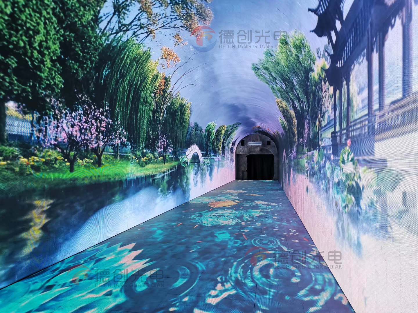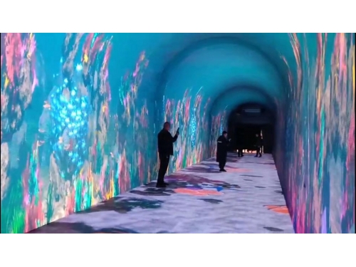 時(shí)空隧道時(shí)光穿梭互動(dòng)LED顯示屏在視覺上,我們營造出多種沉浸式視覺體驗(yàn),類似“海底世界”般的豐富畫面體驗(yàn),用時(shí)光隧道的方式進(jìn)行展示推演;還有四季瞬間變換,春季鳥語花香,夏日綠樹成蔭,秋季滿目黃葉,冬季銀裝素裹等視覺特效;考慮到參觀者的視距比較近,我們采用高密度LED模組使得整體效果達(dá)到動(dòng)靜結(jié)合,消除任何媒體播放過程中的單調(diào)感。