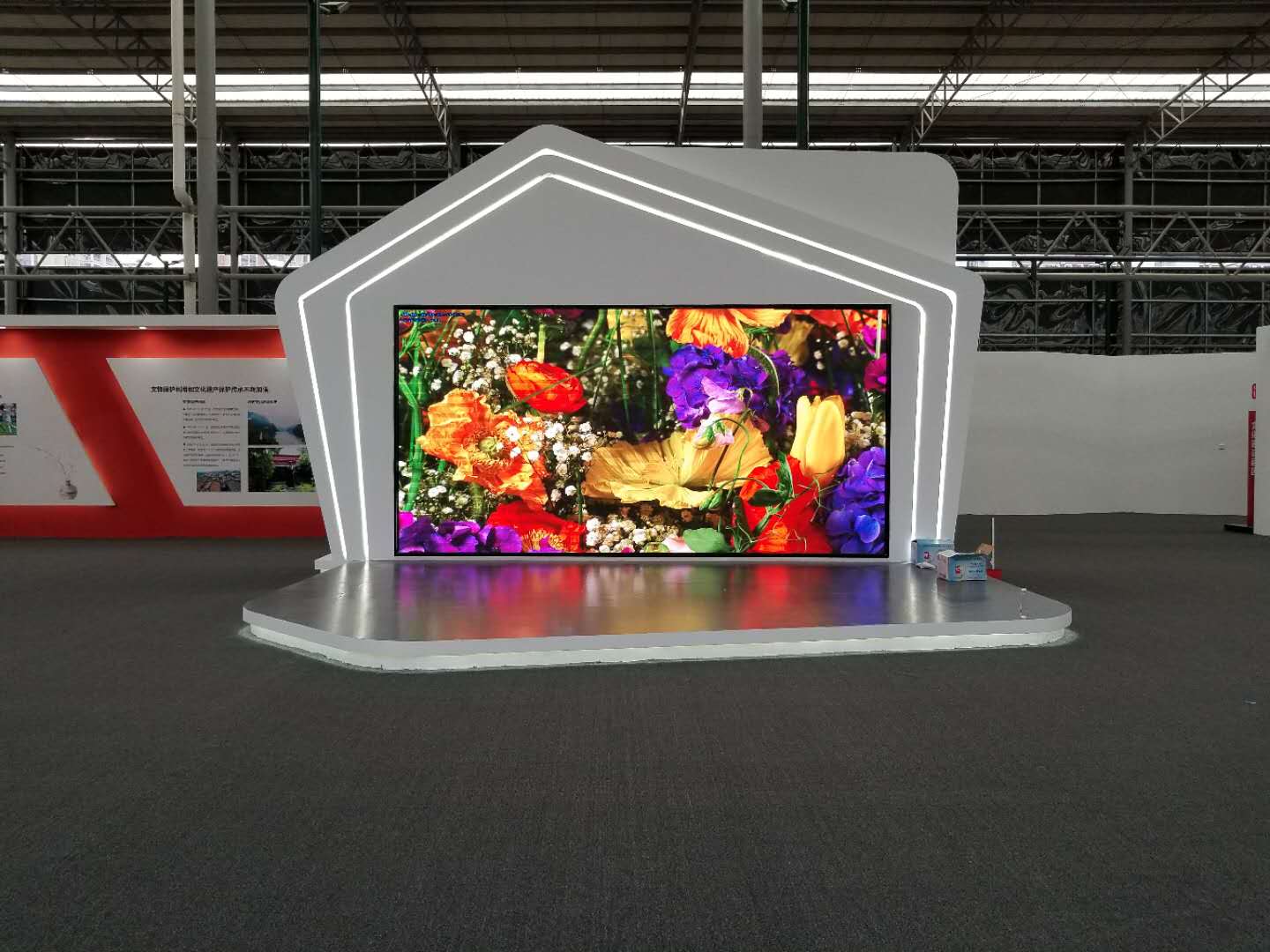 清遠(yuǎn)建市30周年成就展項(xiàng)目中,使用由我公司生產(chǎn)制造的戶內(nèi)高清P3全彩顯示屏總共190平方米,11塊LED戶內(nèi)P3全彩顯示屏。由于開展日期定于正月15日,我公司從2017年農(nóng)歷12月20日合同簽訂到完成施工,整個(gè)項(xiàng)目組成員加班加點(diǎn),放棄年假回家探親與家人團(tuán)聚的美好時(shí)刻駐守工地施工。在規(guī)定的時(shí)間內(nèi)提前完工,得到了甲方領(lǐng)導(dǎo)的一致肯定,對我們施工團(tuán)隊(duì)的負(fù)責(zé)人的態(tài)度給予高度評價(jià)。